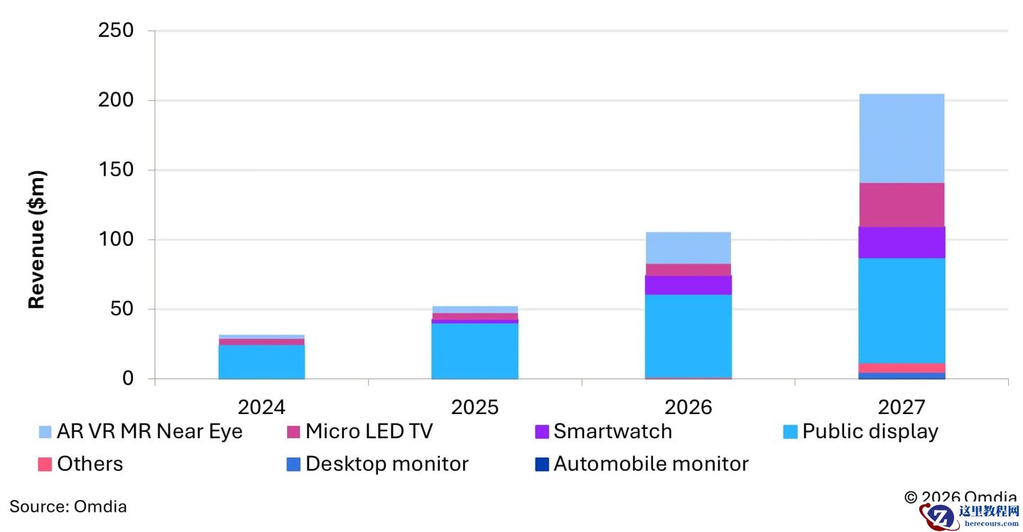 尽管 Micro LED 的商业推广目前仍处于前期阶段,但快速成熟的制造能力和新产品的普及预计将在出货和营收两方面引发爆发式增长。