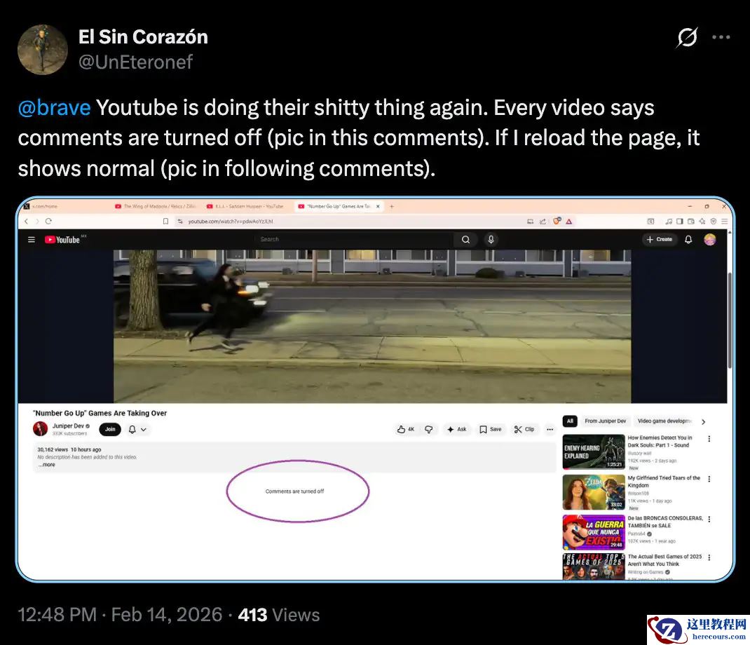 并且,某些使用了自带追踪拦截功能(注:Brave 等)浏览器的用户也报告了类似问题。从现象来看,这表明谷歌近期进一步强化了 YouTube 的广告拦截反制措施。