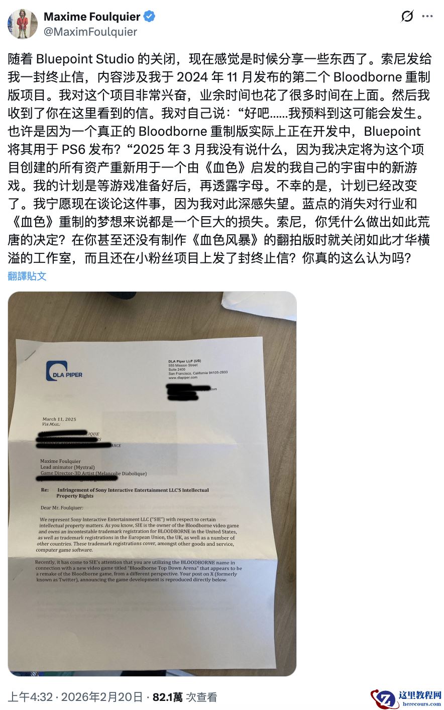 注意到,Maxime Foulquier 称他对索尼的决定感到不满、愤怒,当初索尼联系他时,他一度还对官方 PS5 或 PS6 重制版抱有期待,不过今天的公告像是压死骆驼的最后一根稻草,他最终选择在保持沉默接近一年后公布律师函。