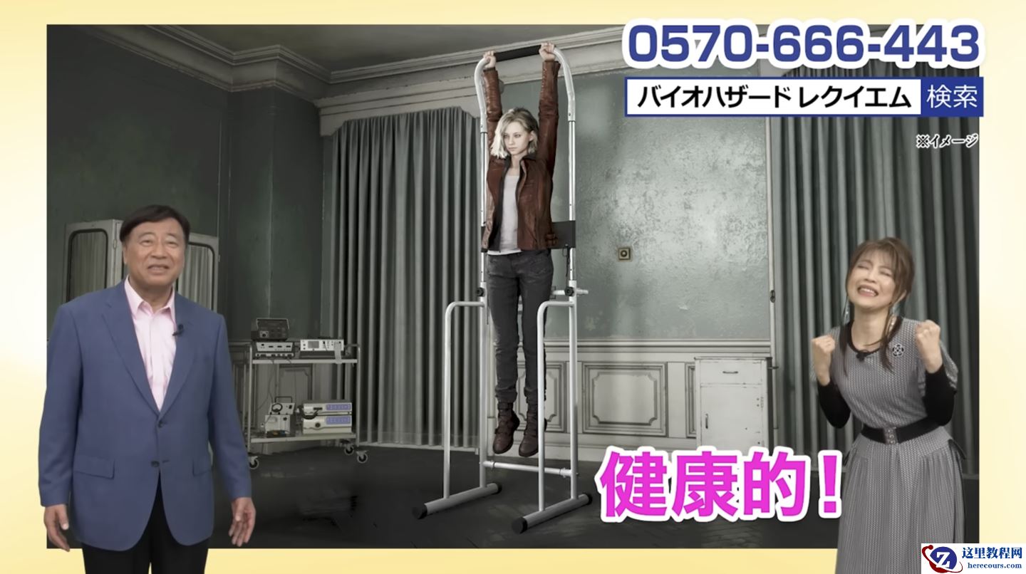 值得注意的是,Yume Group 还为这套产品做了一个老年电视购物风格的抽象广告。游戏主角格蕾丝 · 阿什克罗夫特在片中使用该健身器材进行引体向上锻炼,展示了这套产品的使用方式。