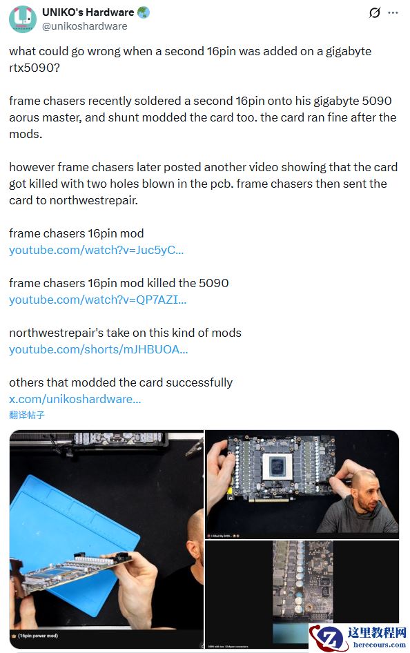然而,事与愿违。改装后的显卡虽然一度正常运行,但最终仍“遇难”。Frame Chasers 推测,问题可能源于两个因素叠加: