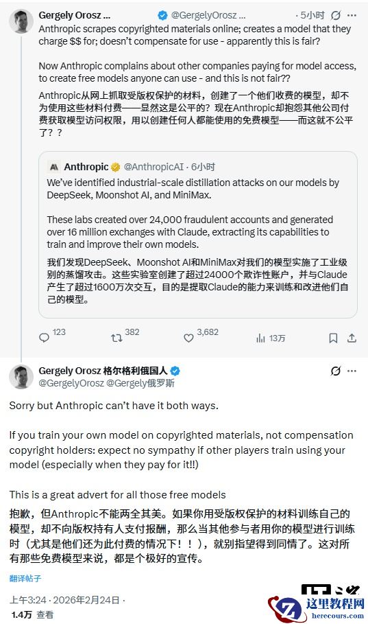 为软件工程师撰写通讯的程序员格尔盖伊 · 奥罗斯(Gergely Orosz)发推文称:“抱歉,但 Anthropic 不能两头占便宜。别忘了 Claude 是怎么训练出来的:用了受版权保护的书籍,直到被起诉后才向版权方付费。”