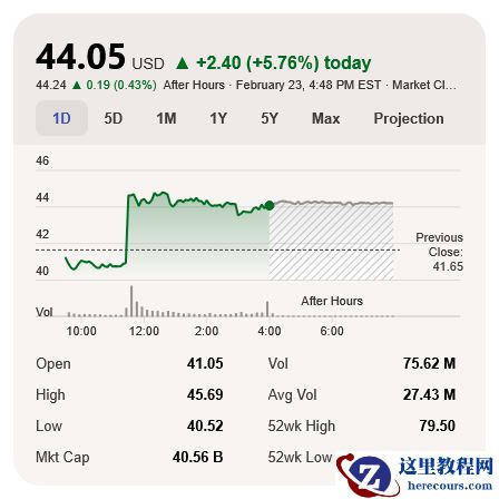 2 月 24 日消息,支付平台 PayPal 贝宝过去一年股价出现了 41.23% 的下跌,本月初公布不及市场预期的财报后甚至一度跌破 40 美元关口,最低点 38.46 美元甚至不到 52 周最高点 79.50 美元的一半。