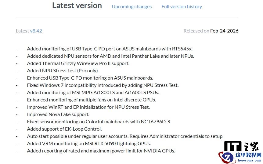 在新功能方面,HWiNFO 8.42 增加了对采用 RTS545x 控制器的华硕主板 USB Type-C PD 接口的监控。同时,该版本新增了针对 AMD 以及英特尔 Panther Lake 及后续型号 NPU 的专用传感器监控,并引入了 NPU 压力测试功能(仅限专业版 Pro)。