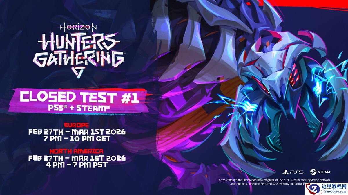 2 月 25 日消息,索尼游骑兵工作室宣布,其开发的多人合作动作游戏《地平线:猎人集结》(Horizon:Hunters Gathering)将于 2026 年 2 月 27 日至 3 月 1 日期间开启封闭测试。