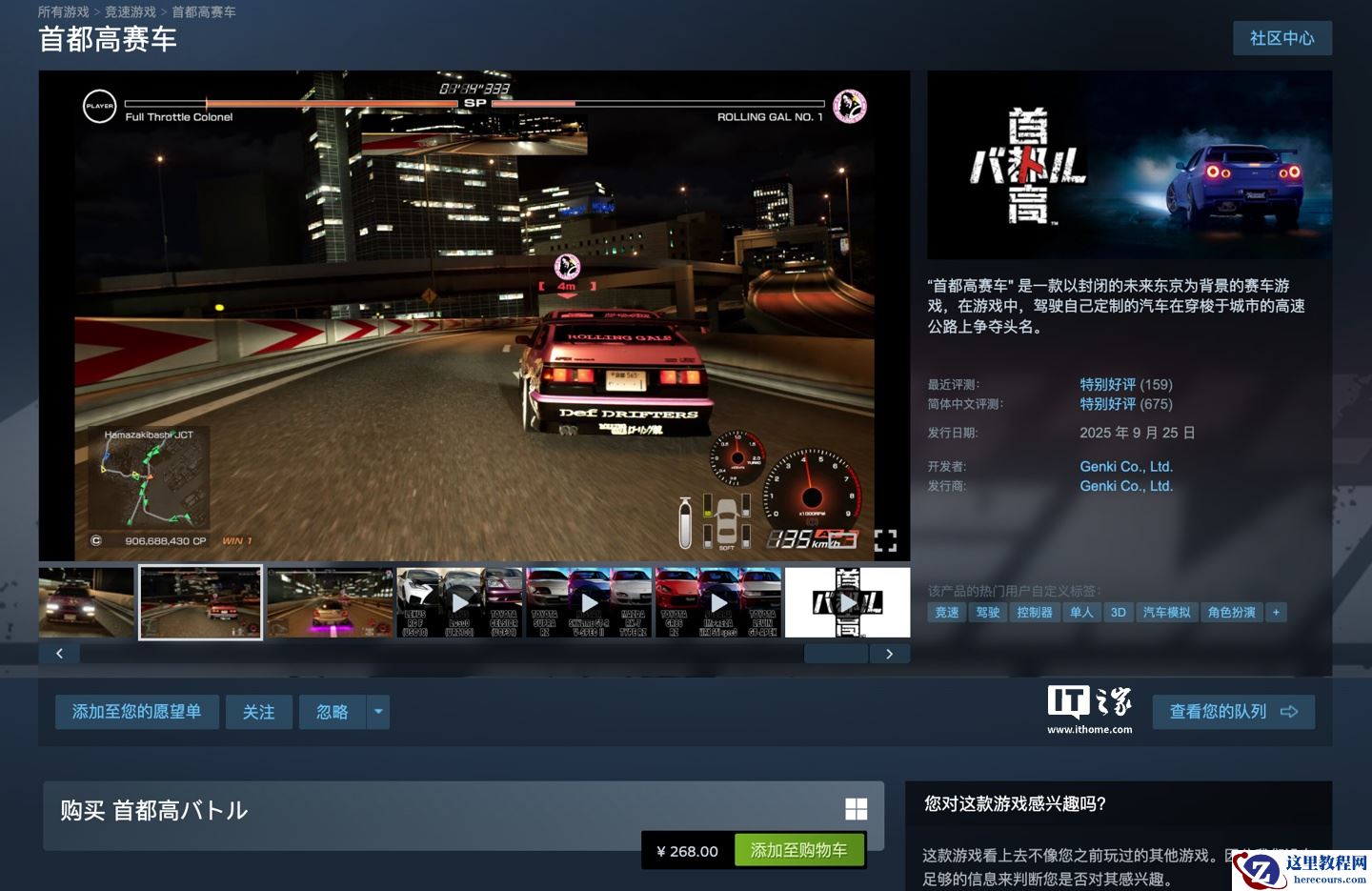 本作已于 2025 年 9 月 25 日登陆 PC 平台,Steam 国区(点此访问)定价为 268 元,玩家好评率 94%“好评如潮”,附 PSN 商品页(https://store.playstation.com/zh-hant-hk/product/JP0128-PPSA32236_00-TOKYOXTREMERACER)。