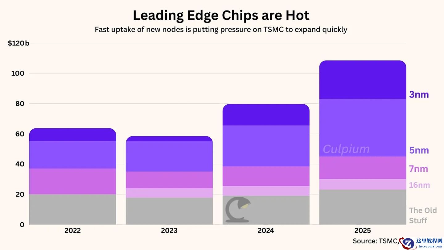 台积电于 2022 年推出 N3 制程,2025 年的收入翻倍达到 250 亿美元(注:现汇率约合 1713.09 亿元人民币),且相关产能已被预订至 2027 年,如今 N2 也面临同样的紧俏局面。