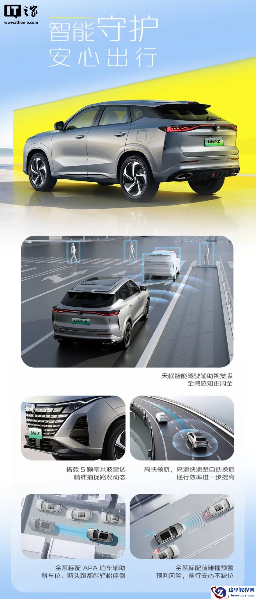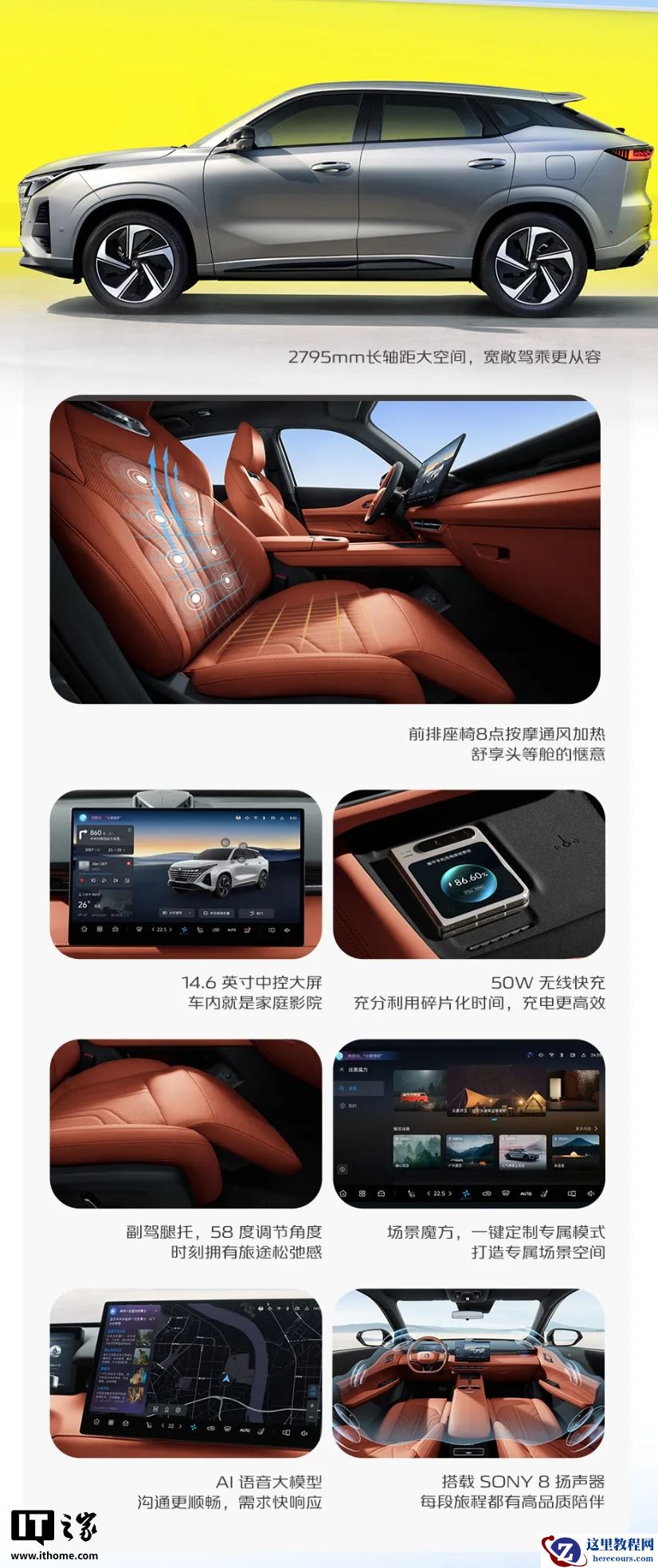2026 款长安 UNI-Z PHEV 搭载 14.6 英寸中控屏 + 10.25 英寸仪表屏,支持 CarPlay、Carlink、HUAWEI HiCar、荣耀车联,配有 Deepseek & 通义千问 AI 大模型,以及 50W 手机无线充电。