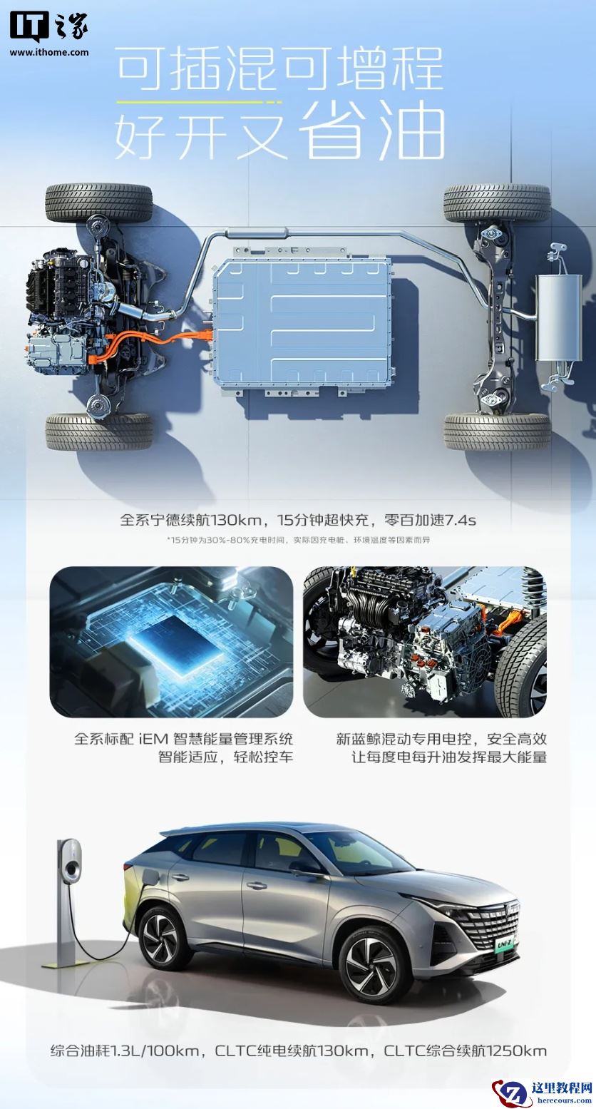 该车配有宁德时代 18.42 度磷酸铁锂电池,CLTC 纯电续航 130km,CLTC 综合续航 1250km。