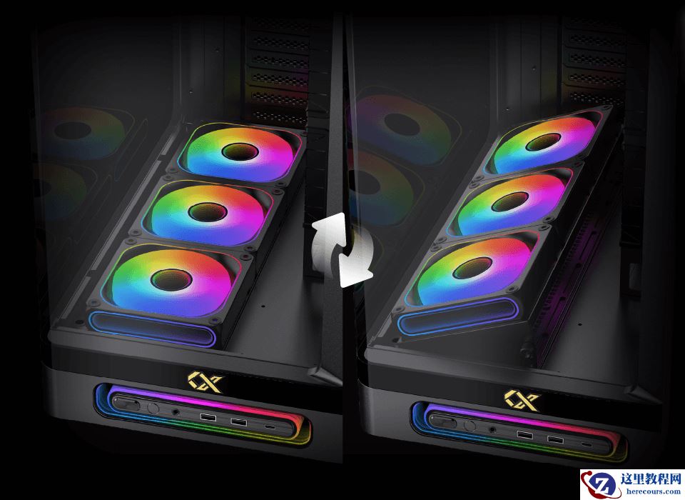 此外,这款机箱在底座部分集成 ARGB 系统,不仅左侧开口能泄露自定义光效,包含 2A1C 的前置 I/O 面板也被“无限镜”灯环包裹。