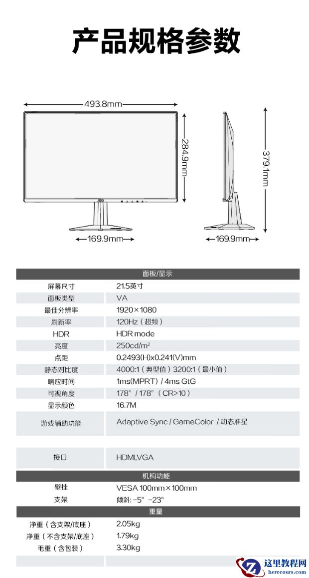 附该显示器详细参数如下: