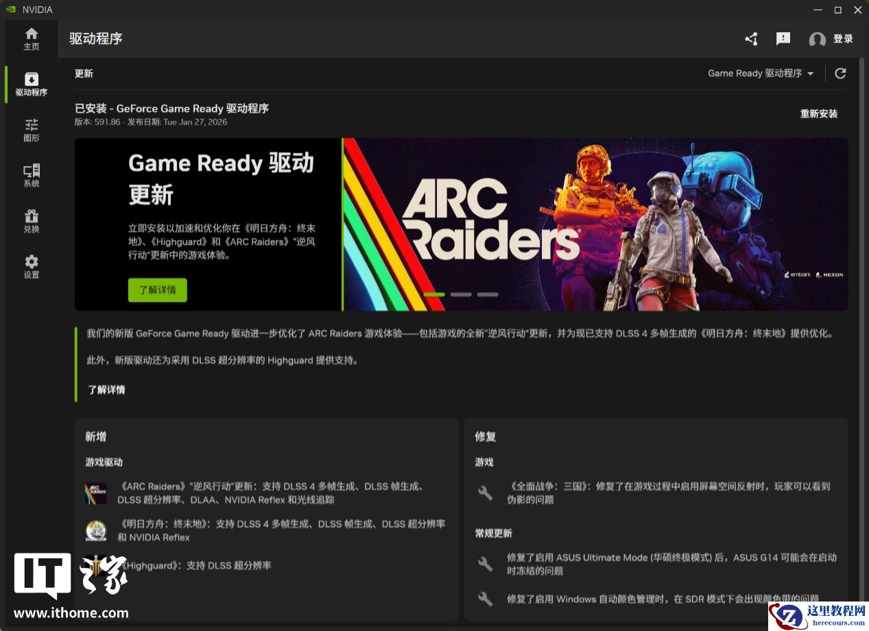 NVIDIA 驱动程序也更新到了 591.86 版本,遗憾的是该驱动暂未支持手动调节《生化危机:安魂曲》的驱动程序设置。