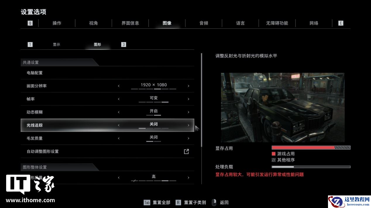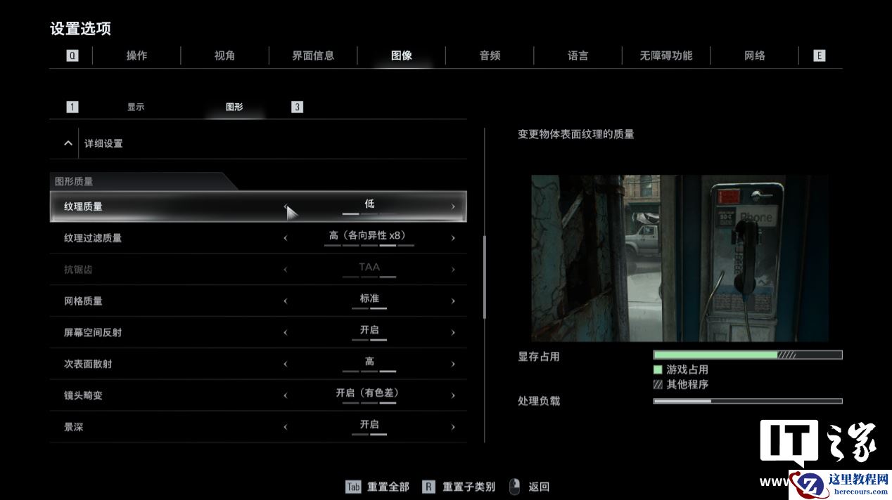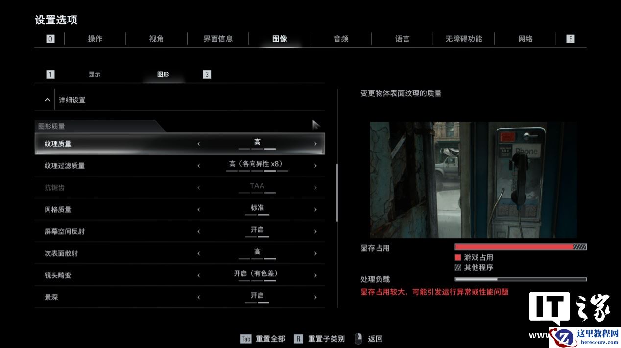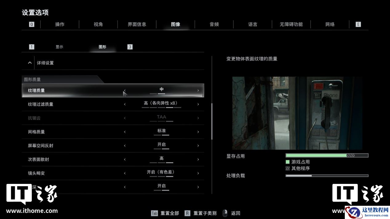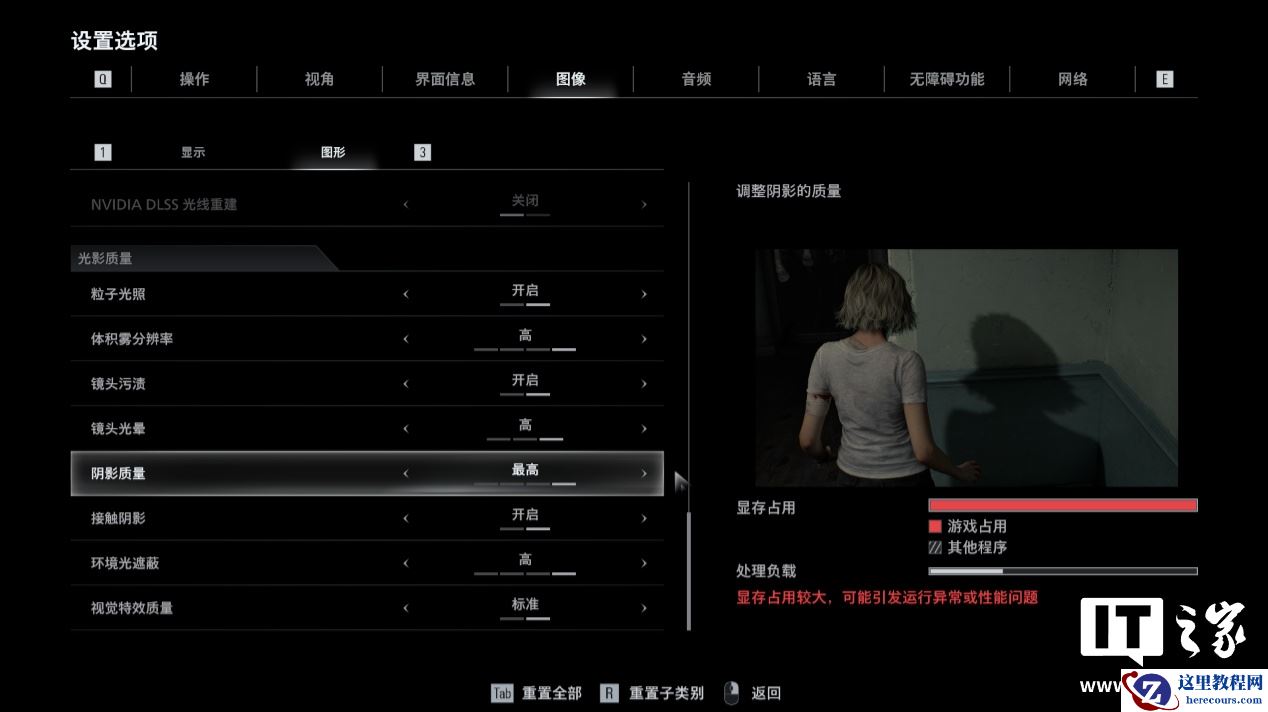 相对而言,其它画质选项对于显存占用的影响不是很大,如果你的电脑硬件配置不高,可以适当调低这两个选项来获得更好的性能表现,也能有效避免出现“爆显存”的问题。
