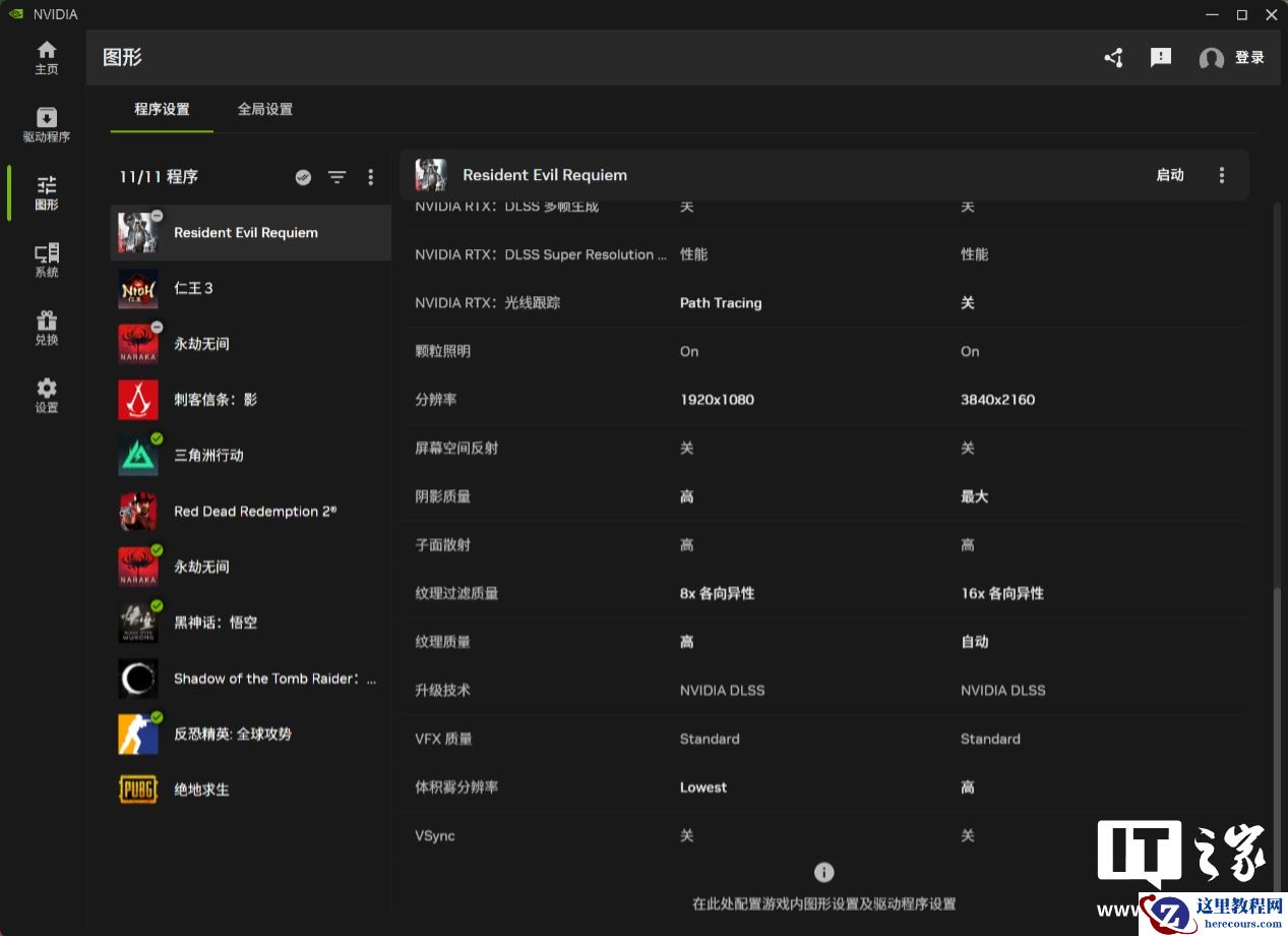 作为开年首批备受期待的单机游戏之一,《生化危机:安魂曲》的游戏画质和性能优化体验下来还是比较出色的,针对主流入门配置的处理器和显卡,足够确保 1080P 下的流畅游戏体验,加上 NVIDIA DLSS 4 超分辨率和多帧生成技术,也最大程度照顾到想体验光追效果的玩家朋友。