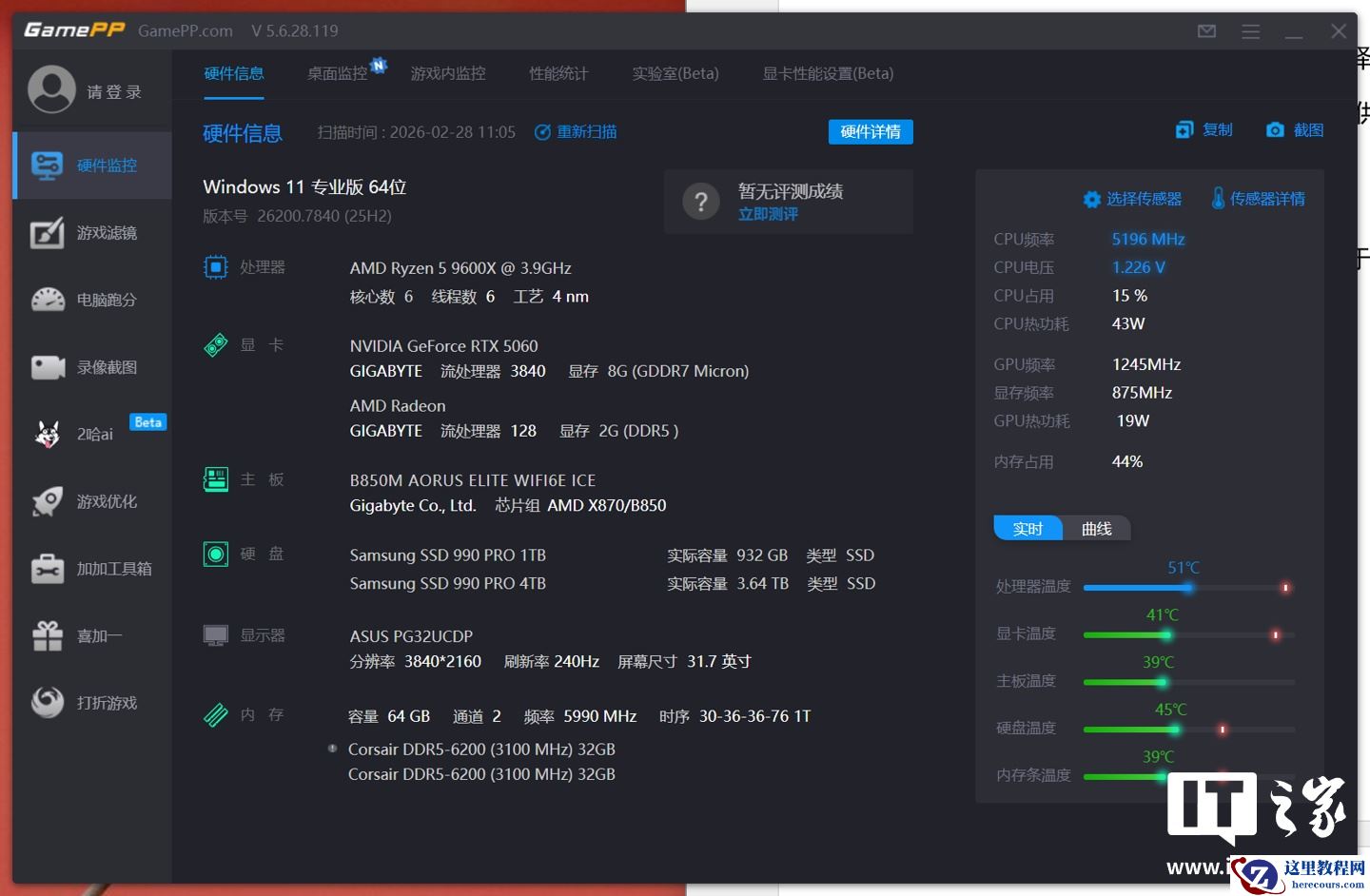 为了更加贴近主流玩家的硬件选择,这次以 AMD 锐龙 5 9600X 处理器搭配 RTX 5060 显卡为核心,力求给大家提供具有价值的性能参考。