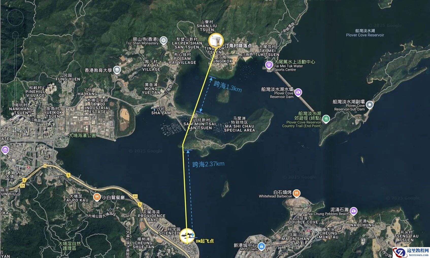 从香港科学园出发,直线穿越吐露港和船湾海,直达汀角村的村口,美团无人机飞完这段路仅用时 10 多分钟。这条美团无人机与香港青少年服务处合作设立的“大埔汀角村无人机航线”,也是全港首条服务于老年人送餐的低空物流航线。