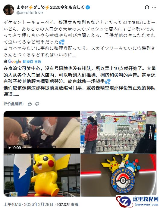 用户 aeroflotlove 在 X(原推特)上分享了东京湾宝可梦中心的混乱视频,并描述了大家恐慌抢购这款限量版皮卡丘玩偶的场面: