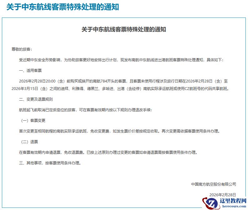 3 月 1 日消息,受近期中东安全形势影响,为协助旅客更好地安排出行计划,国航、东航、南航特制定涉及迪拜、阿布扎比、利雅得等相关航线客票特殊处理规定。