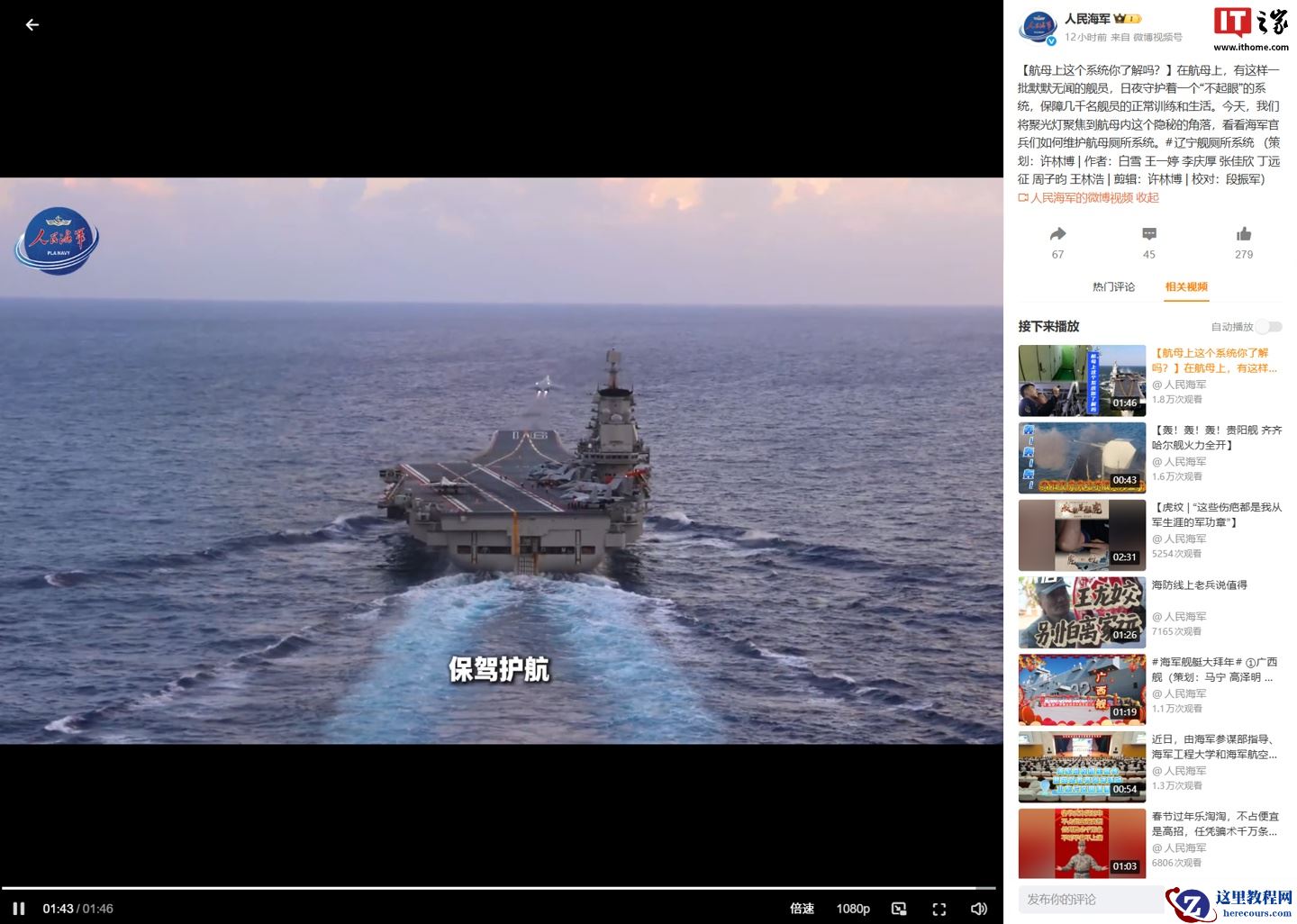 3 月 1 日消息,中国人民解放军海军官方微博昨日发布视频介绍了航母的厕所系统,以及该系统的日常维护情况。