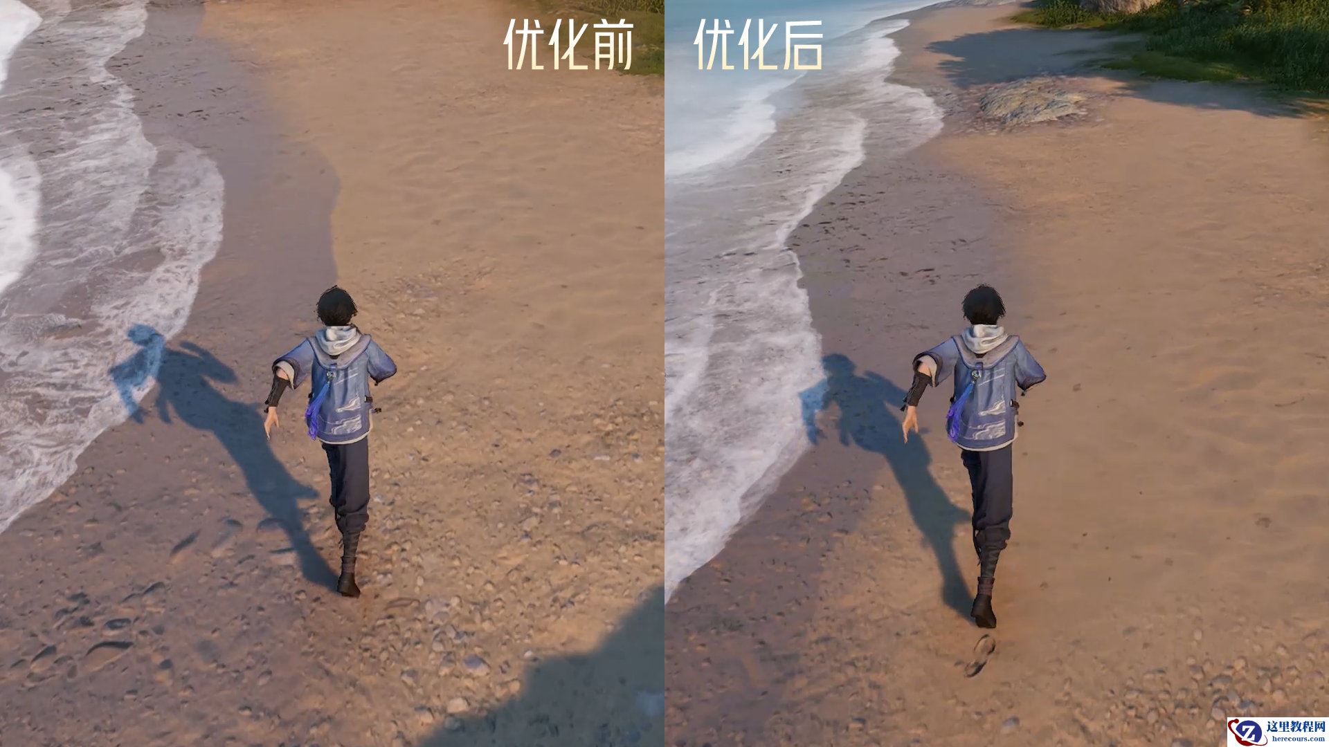 本作的美术风格也进行了优化,相较于先锋测试,争鸣测试的 Loading 界面、主角耐力条,以及各功能系统界面都进行了 UI 升级改造,重点突出了特色元素“流”。同时,场景交互和角色肤质表现力也进行升级:水体层次感将更加丰富,海边的沙滩地面也新增了脚印效果;角色的皮肤材质也更加细腻真实。
