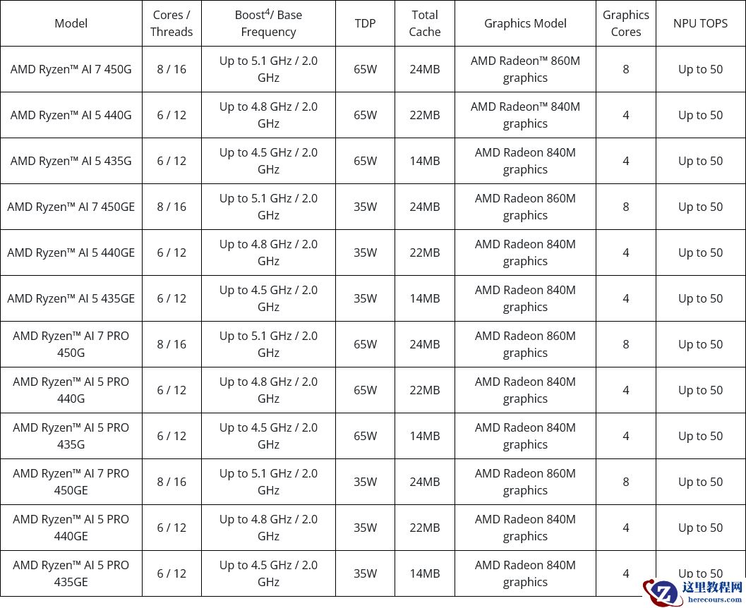 注意到,此次发布的型号命名格式与移动端兄弟产品一致但与此前桌面端的锐龙不同。此外其至高为 8 核 CPU 规格,显示新品不包含基于 "Strix Point" 或 "Gorgon Point 1" 芯片的产品。