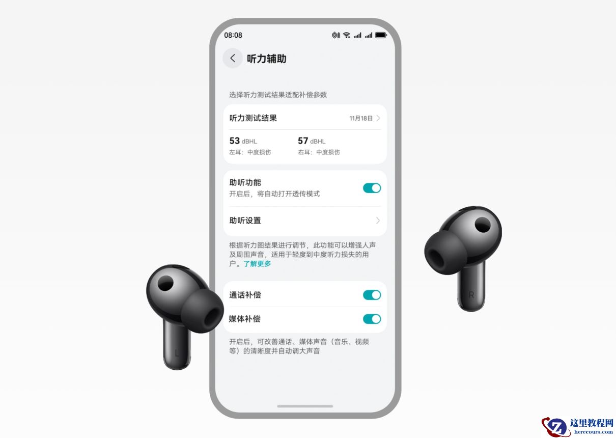 针对已经出现听力损伤的用户群体,华为 FreeBuds Pro 5 提供了高度定制化的助听补偿模式。基于前述的个性化听力测试数据,耳机在开启该模式后,能够针对性地提升人声清晰度,为轻中度听力受损的用户提供实质性的听力补偿体验,让科技的温度在日常交流与媒体聆听中得以体现。