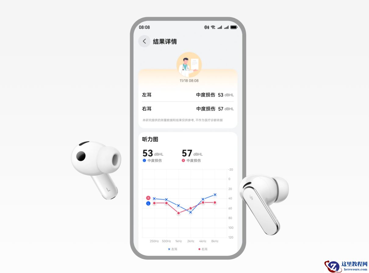 华为 FreeBuds Pro 5 还支持居家听力检测。传统的听力检测往往需要前往专业的医疗机构,而在华为创新研究 App 的赋能下,这一过程被极大地轻量化 —— 用户只需搭配 HarmonyOS 6 及以上版本的手机,在安静的居家环境下即可自主完成精准的听力检测。这种“随时随地”的检测体验,让用户能够动态掌握自身的听力损伤状况,还支持快速导入自定义的听力图数据,构建个人听力档案。