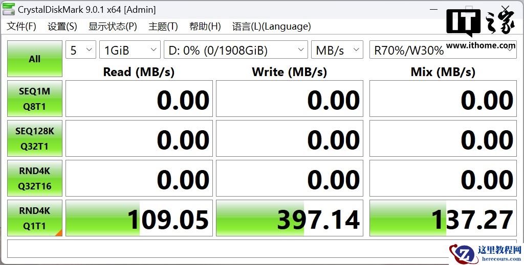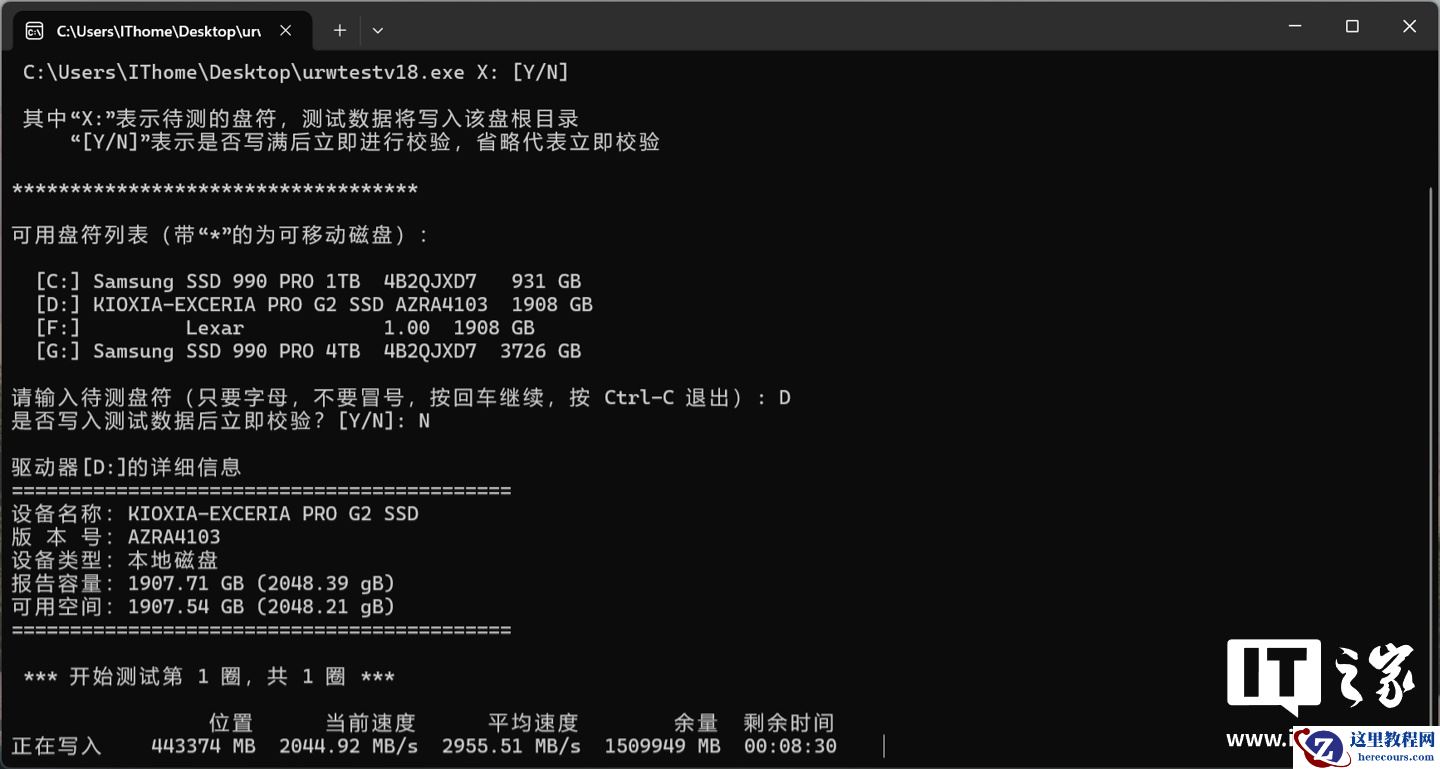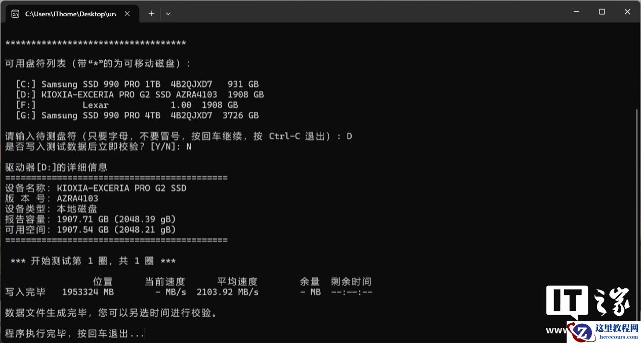 现在我们来测试下铠侠 Exceria PRO G2 固态硬盘在 Windows 系统下的实际读写表现。