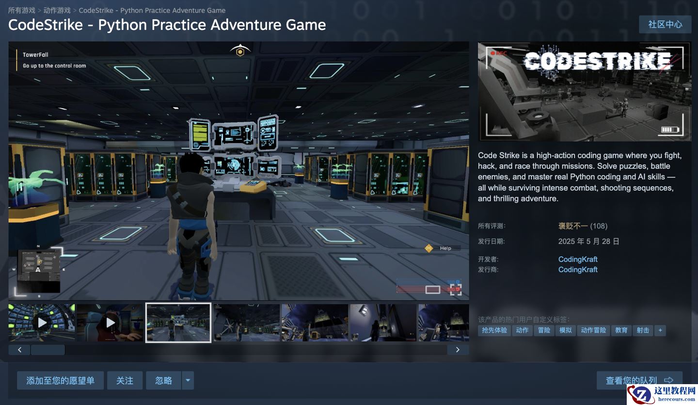 据介绍,《CodeStrike》自 2025 年 5 月以抢先体验形式上线 Steam,本作主打第三人称射击(TPS)、跳跃动作与编程解谜相结合的学习玩法。要求玩家通过编写 Python 代码推动剧情发展。