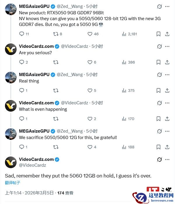 @Zed__Wang 同时提到,英伟达已放弃推出 128-bit、12GB 显存规格的 GeForce RTX 5050 / 5060 显卡。