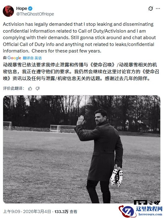 注意到,Hope 表示:“我仍会留在社区,聊聊《使命召唤》的官方消息,以及一切与爆料 / 机密无关的内容。感谢过去几年大家的支持。”