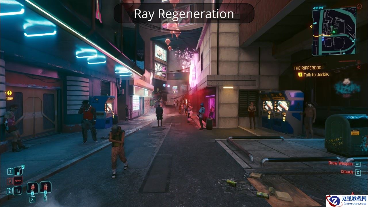 注:Ray Regeneration 是 AMD 开发的高级光影降噪技术。通俗理解为“AI 画面净化器”,能把开启光线追踪后产生的粗糙、充满噪点的画面,利用 AI 算法填补平滑,让光影看起来更真实。