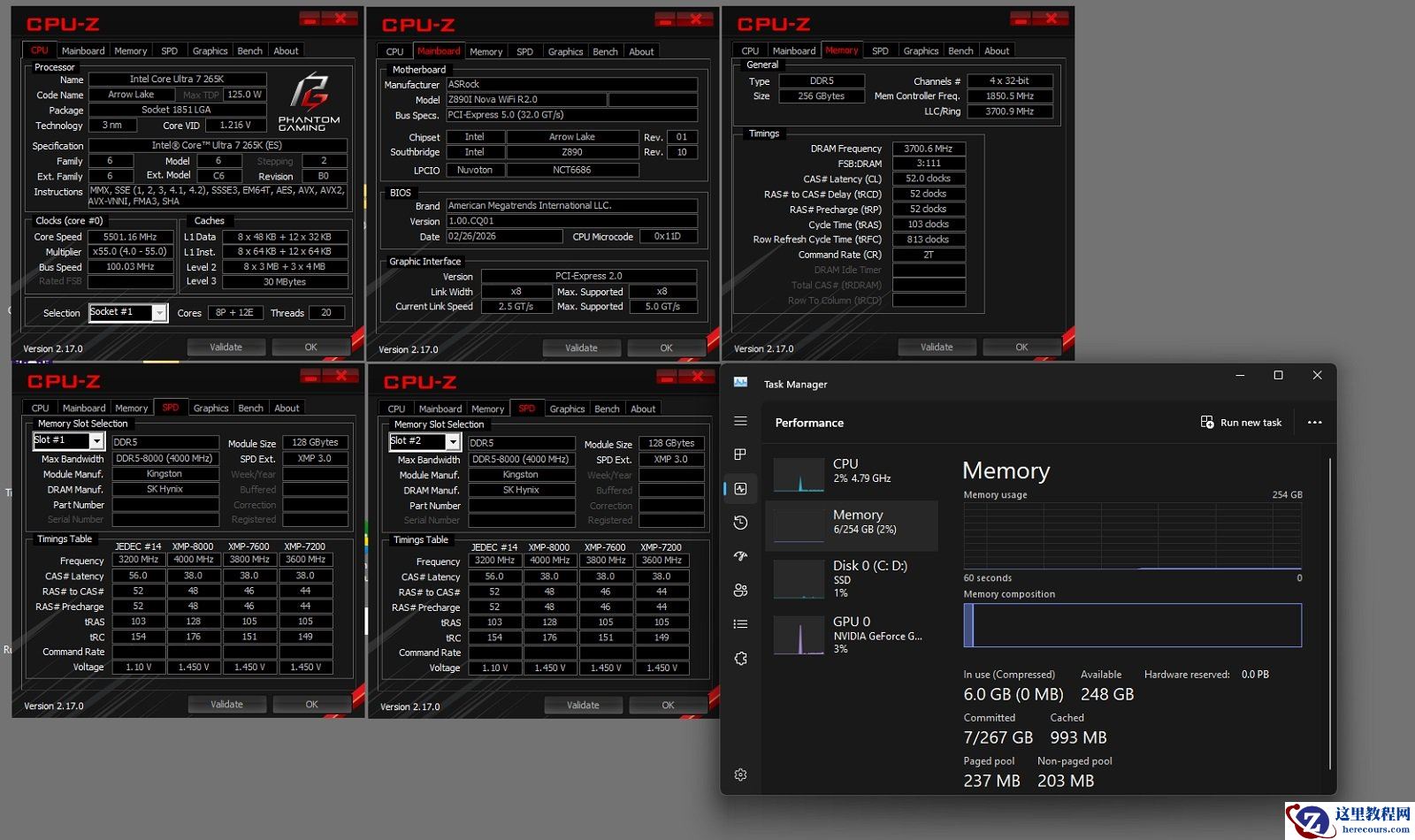 3 月 6 日消息,华擎 ASRock 今日宣布,其 Phantom Gaming 幻影电竞系列 Mini-ITX 主板 Z890I Nova WiFi R2.0 搭配 2 条金士顿 128GB CQDIMM 内存模组(内存条)实现 256GB 大容量 DDR5-7400 MT/s 高速运行,突破了多数平台仅能支持 DDR5-7200 MT/s 的限制。