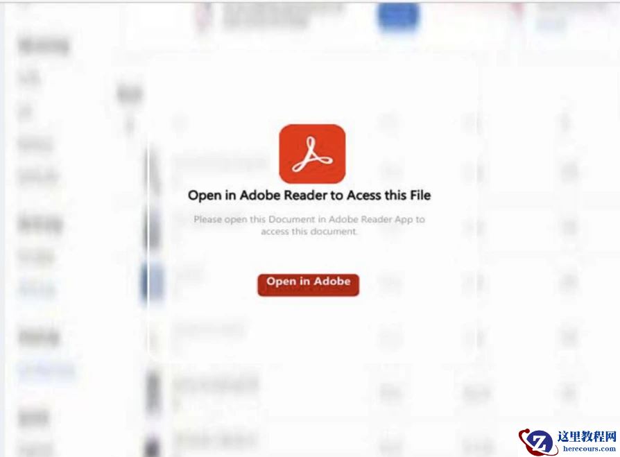在其中一个被记录的活动中,受害者收到一封包含伪造 PDF 附件的邮件。该附件打开后仅显示一张模糊的静态图片,模仿受限文档的外观。图片上的红色按钮写着“在 Adobe 中打开”,诱导用户点击以继续访问文件。