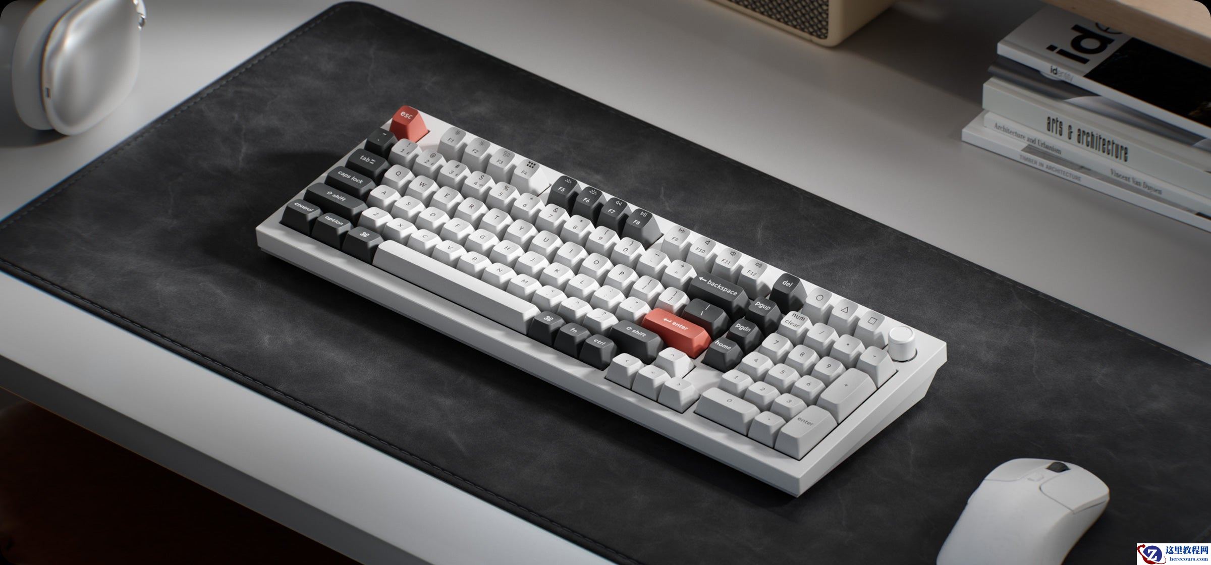 其采用铝制机身,结合了 Keychron Silk POM 轴体、KSA 高度 PBT 材质二色注塑工艺键帽、新设计旋钮,内部采用支持轴体热插拔 + 南向 RGB LED 背光的 PCB,搭配 Gasket 结构、PC 定位板、丰富的 6 层吸声填充。