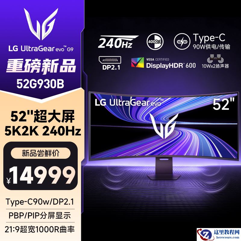 3 月 9 日消息,LG 旗下“52G930B”52 英寸带鱼屏显示器现已正式开启预售,该机支持 5K/2K 双模,首发价 14999 元。