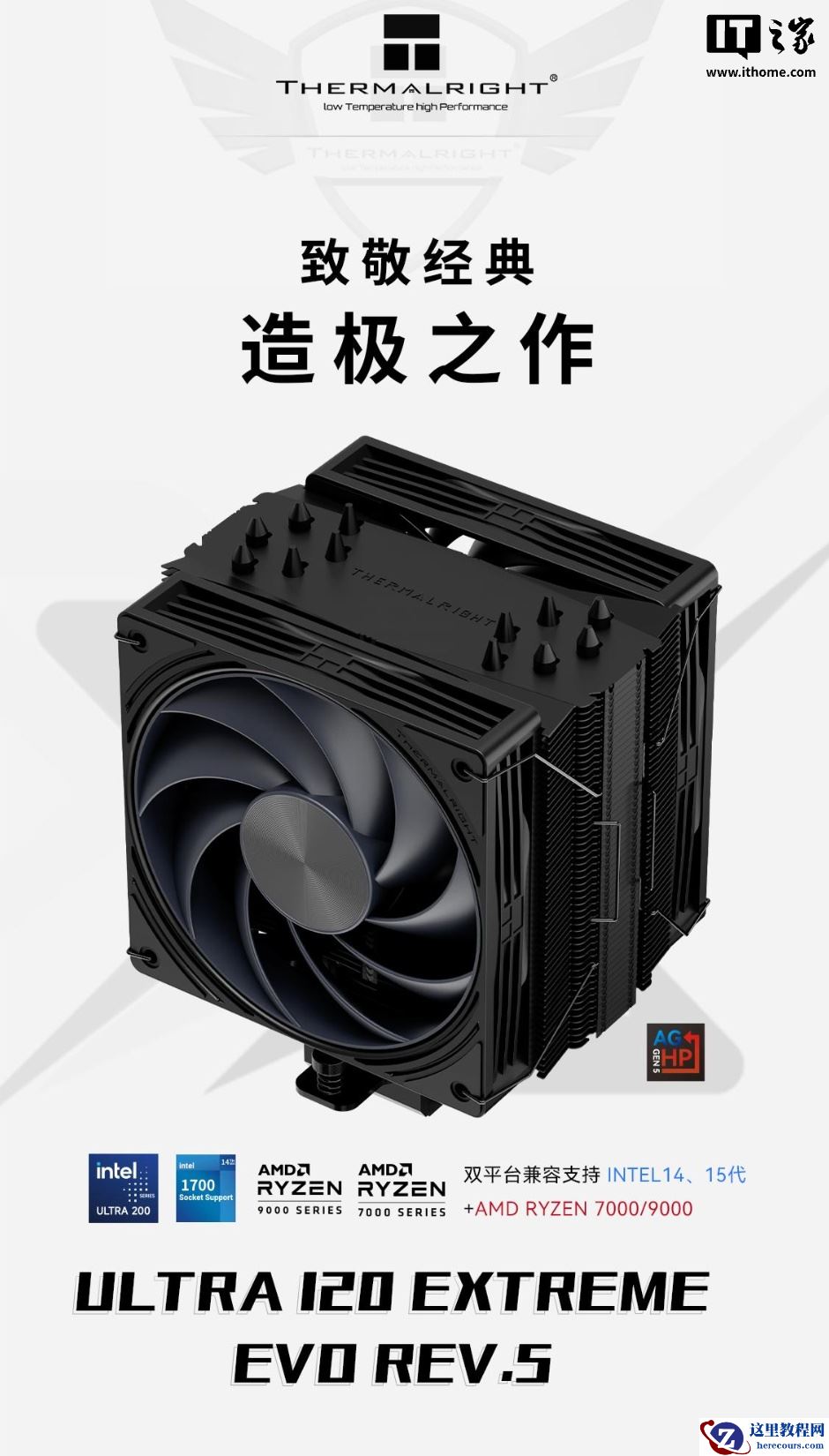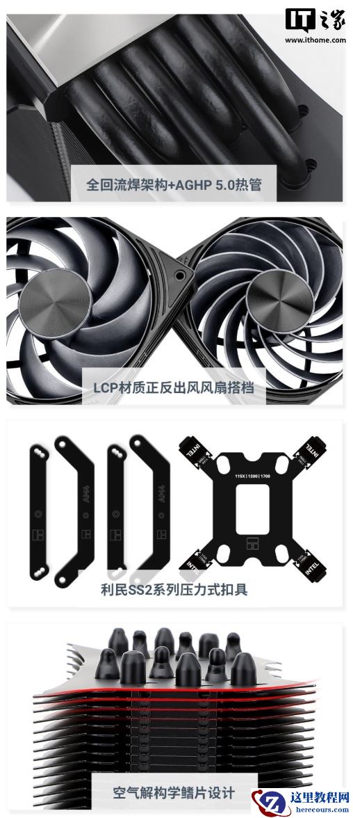 系列散热器整体尺寸为 132×63×157 mm(L×W×H),使用全回流焊结构 + AGHP 5.0 六热管,兼容英特尔的 LGA 1851/1700 以及 AMD 的 AM 5/4 平台。