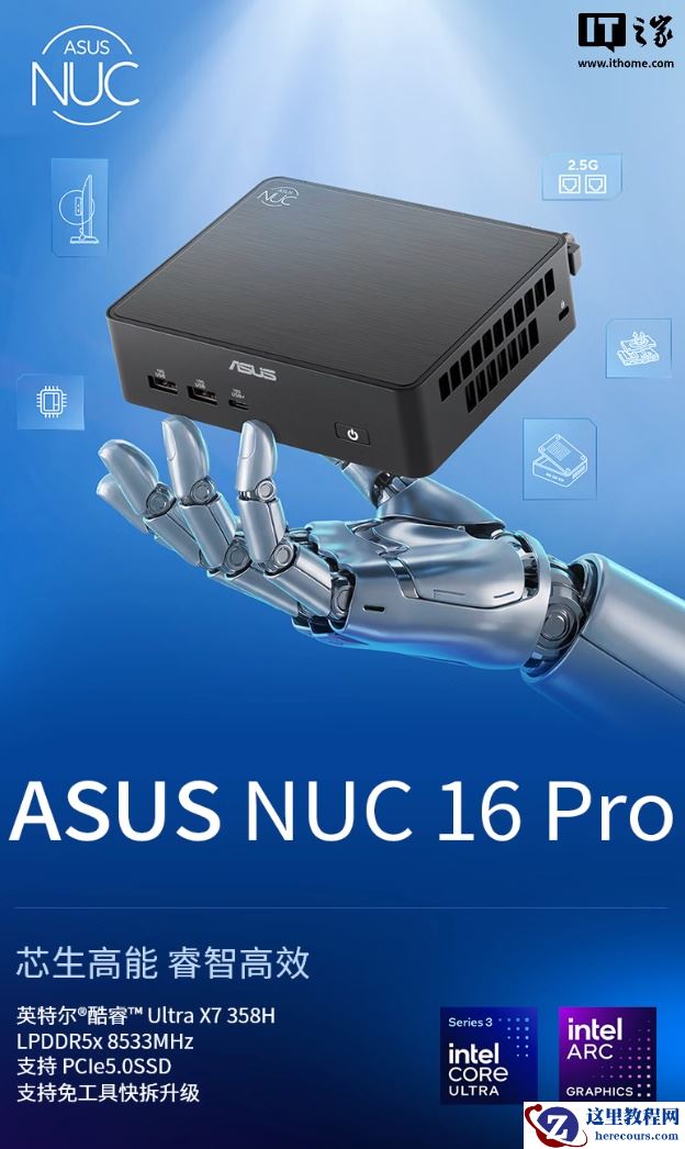 3 月 9 日消息,华硕现已在京东上架 NUC 16 Pro 迷你主机,该机采用英特尔酷睿 Ultra X7 358H + 32GB RAM + 1TB 存储规格,定价为 10999 元。