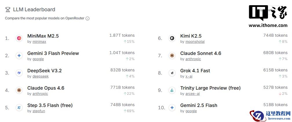 最新数据显示,中国大模型周调用量达 4.19 万亿 Token,环比增长 34.9%,连续第二周超越美国。全球前五大模型中,MiniMax M2.5、DeepSeek V3.2 和阶跃星辰 Step 3.5 Flash 占据三席,其中阶跃星辰表现尤为亮眼,环比激增 69%。>> 查看详情