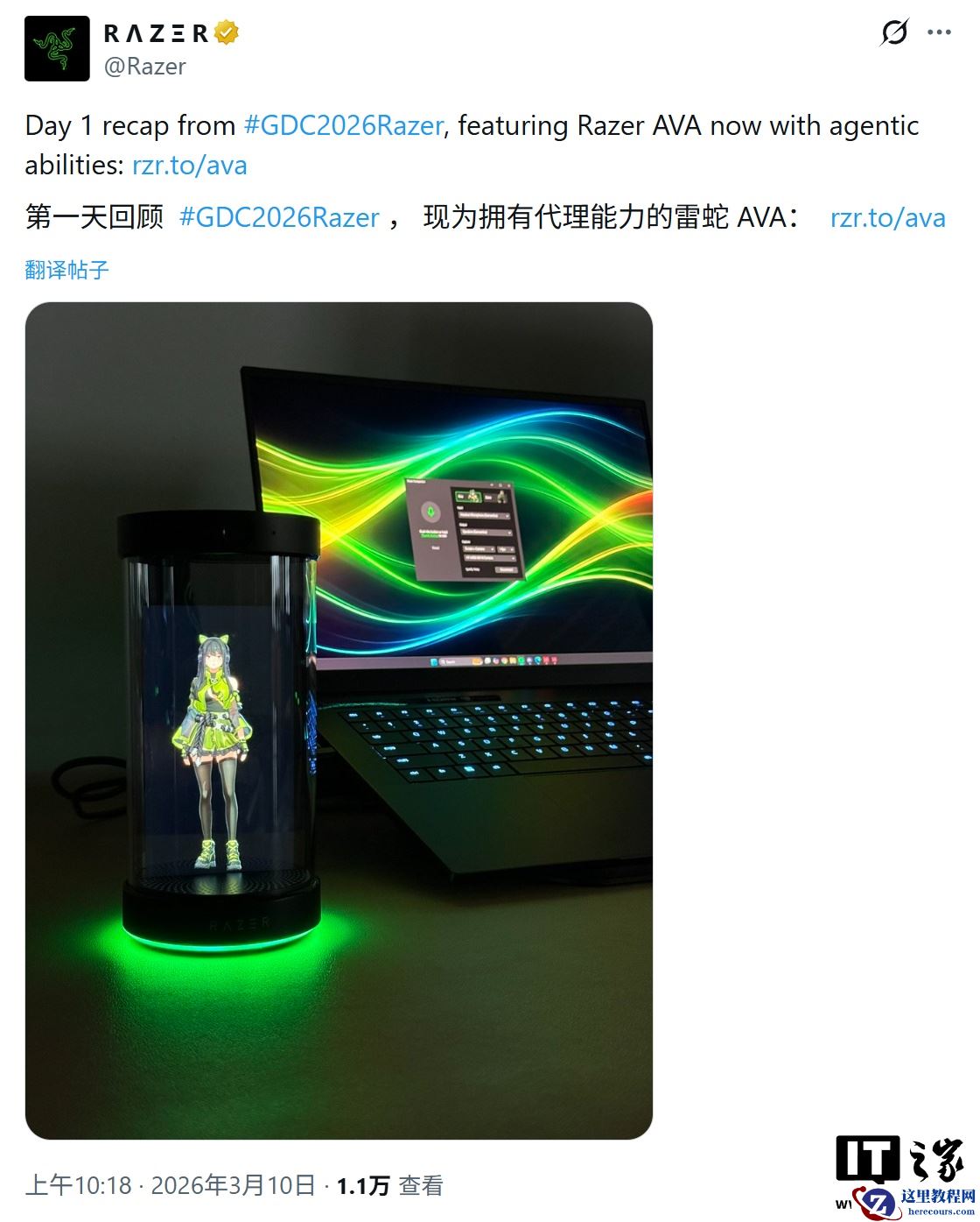 3 月 10 日消息,科技媒体 Wccftech 昨日(3 月 9 日)发布博文,报道称在 2026 年游戏开发者大会(GDC 2026)上,雷蛇(Razer)展示两款核心 AI 工具:面向大众的“智能体桌面助手”Razer AVA 与专为游戏开发者打造的 AI QA(质量保证)助手。