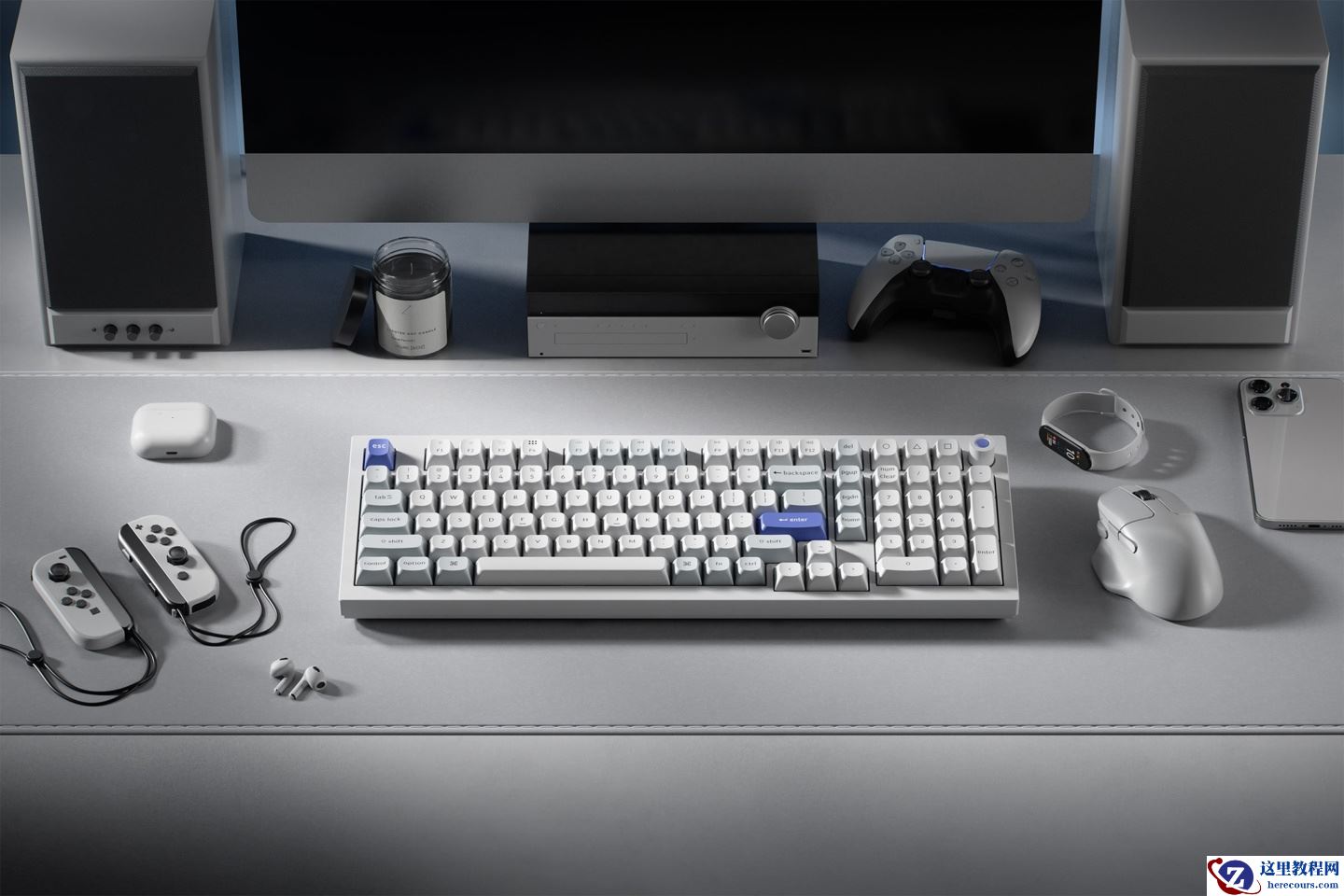 Q5 HE 8K 内部采用 Double Gasket 固定结构,含有 4 层声学阻尼,配备支持轴体热插拔并配备下灯位 RGB LED 背光的 PCB,此外还有 PC 定位板,原装键帽为 OSA 高度 PBT 材质二色注塑工艺。