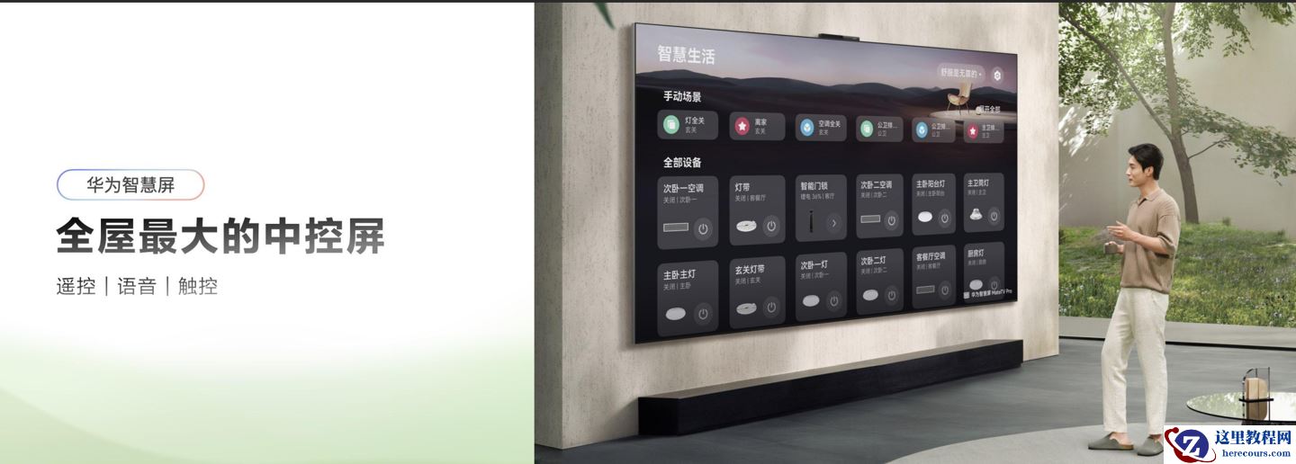 在全屋智能时代,客厅大屏的角色正在发生根本性转变。华为智慧屏 MateTV 凭借灵犀指向遥控、鸿蒙 AI 等多种创新交互方式,化身为家庭中最大的中控屏,让用户可以通过语音、遥控、触控轻松操控全屋各个家居设备。全屋智能设备状态一目了然,不用切换多个 APP,语音或触屏就能一键调控,回家自动开启舒适模式,睡前一键启动睡眠模式,智能家居操控从此变得简单易懂,全家都能轻松上手。