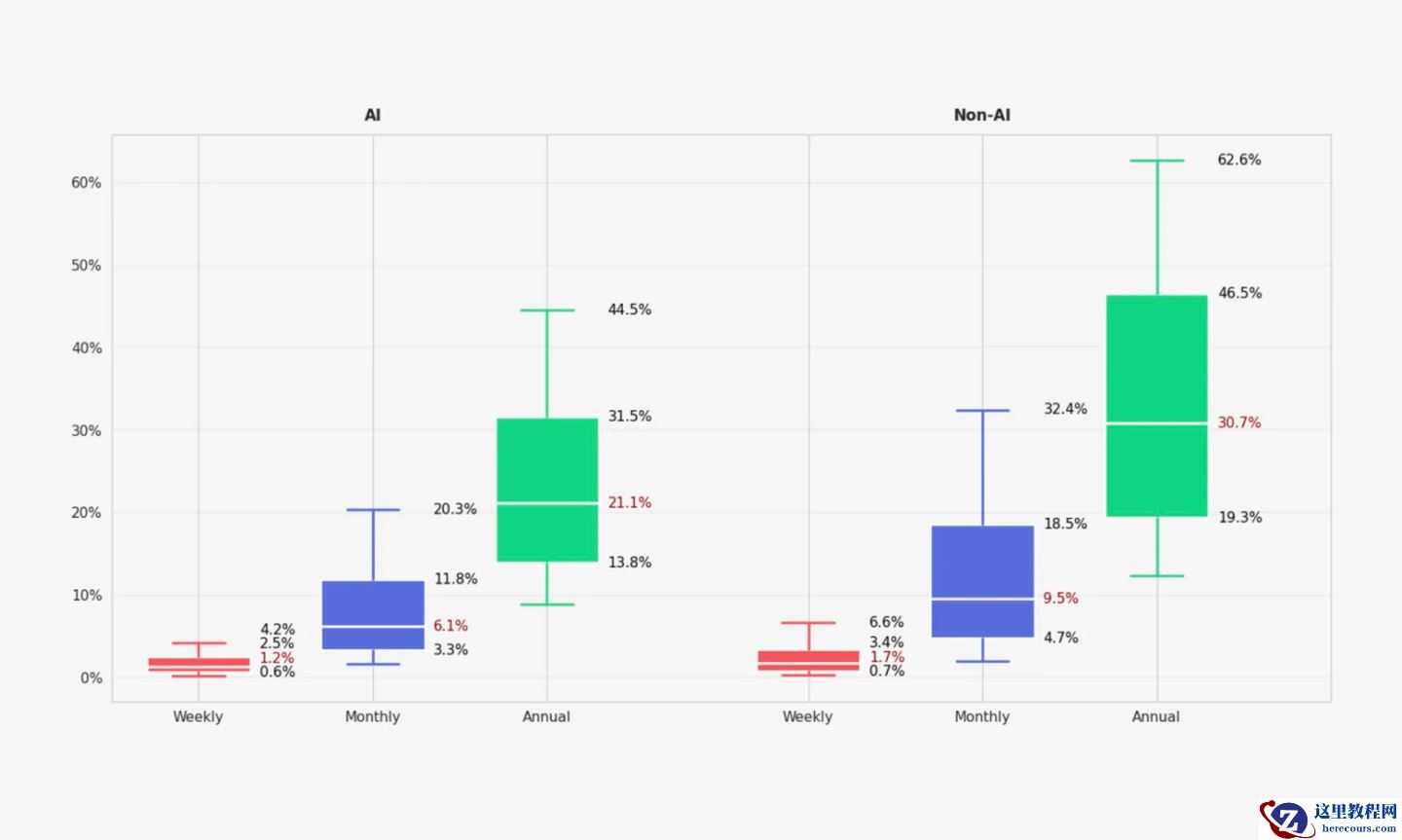 以 12 个月后仍留存的订阅用户衡量的年度留存率,AI 应用为 21.1%,而非 AI 应用为 30.7%;月度留存率方面,AI 应用为 6.1%,非 AI 应用为 9.5%,相差 3.4 个百分点。