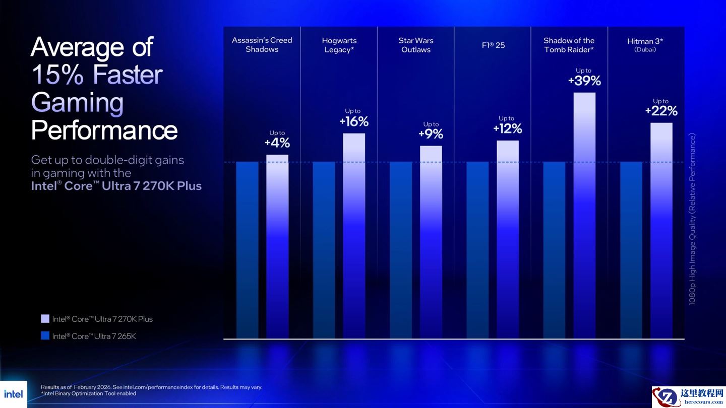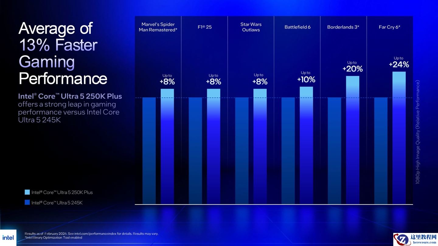 得益于额外的核心与频率提升,英特尔声称,与现有 200 系列相比,新款 Ultra 200S Plus 系列能够实现最高 15% 的游戏性能提升。
