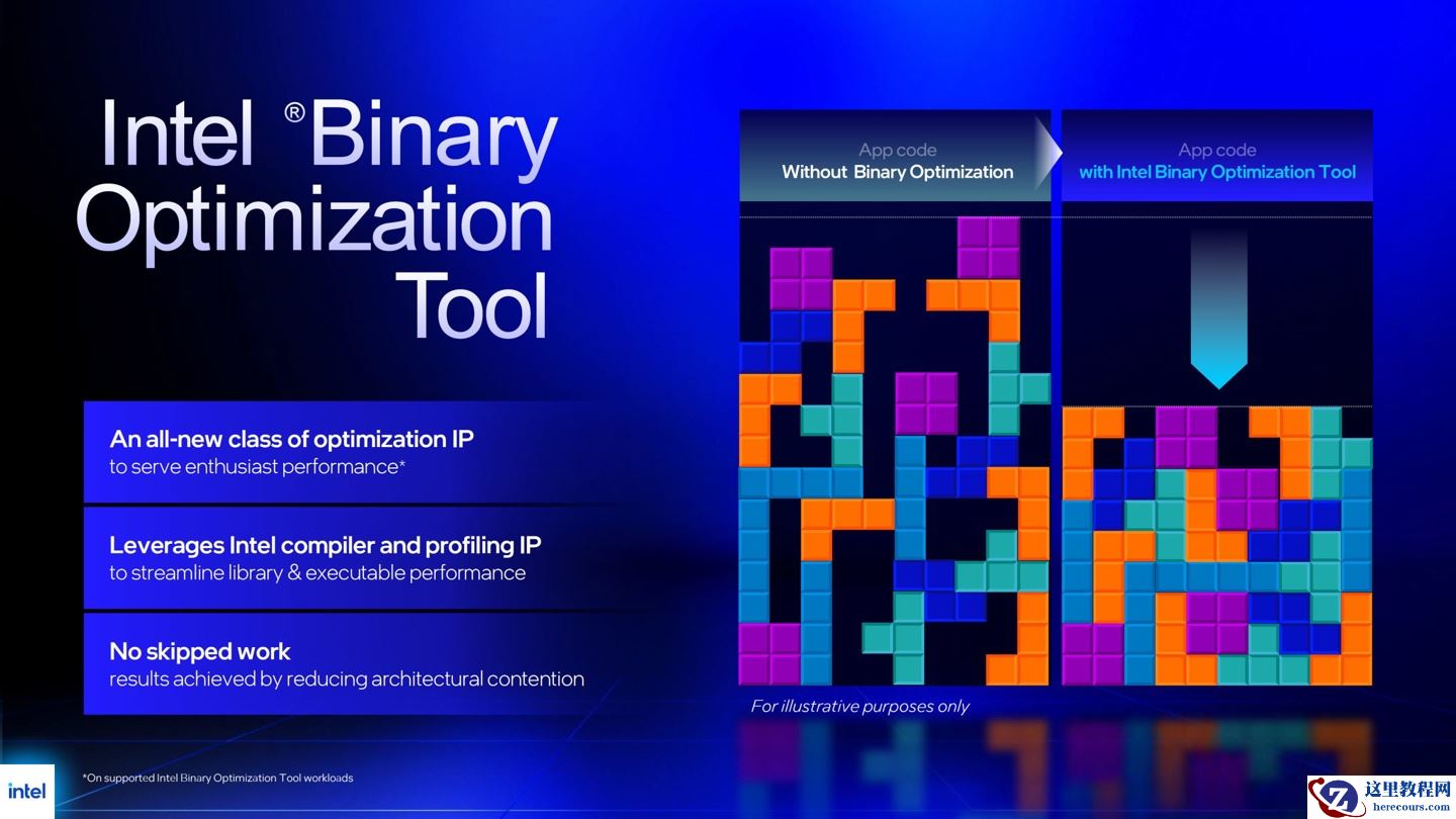 除了硬件方面的改进,英特尔还推出了英特尔二进制优化工具(Intel Binary Optimization Tool),这是一个旨在提升特定工作负载下原生性能的软件层。该工具被描述为一个二进制转换优化系统,即使软件最初是针对其他 x86 处理器或其他架构进行优化的,它也能提高指令效率。