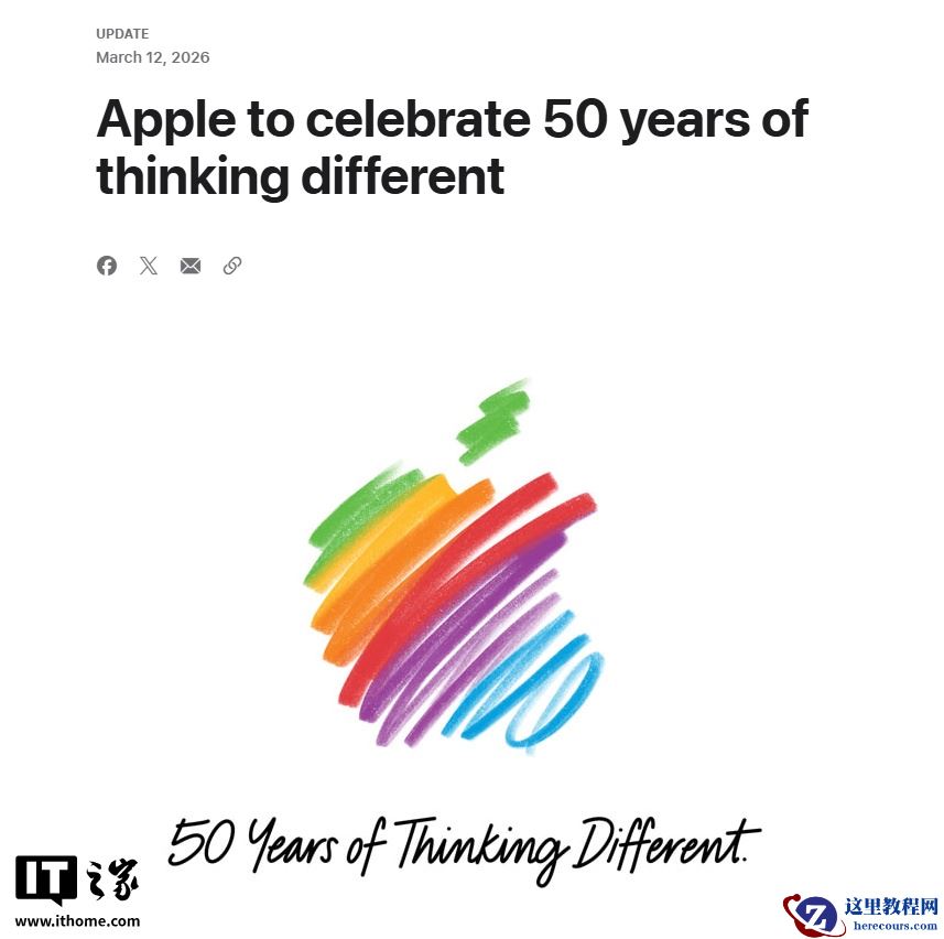 3 月 12 日消息,苹果公司今日宣布,计划庆祝将于 4 月 1 日到来的 50 周年纪念日。