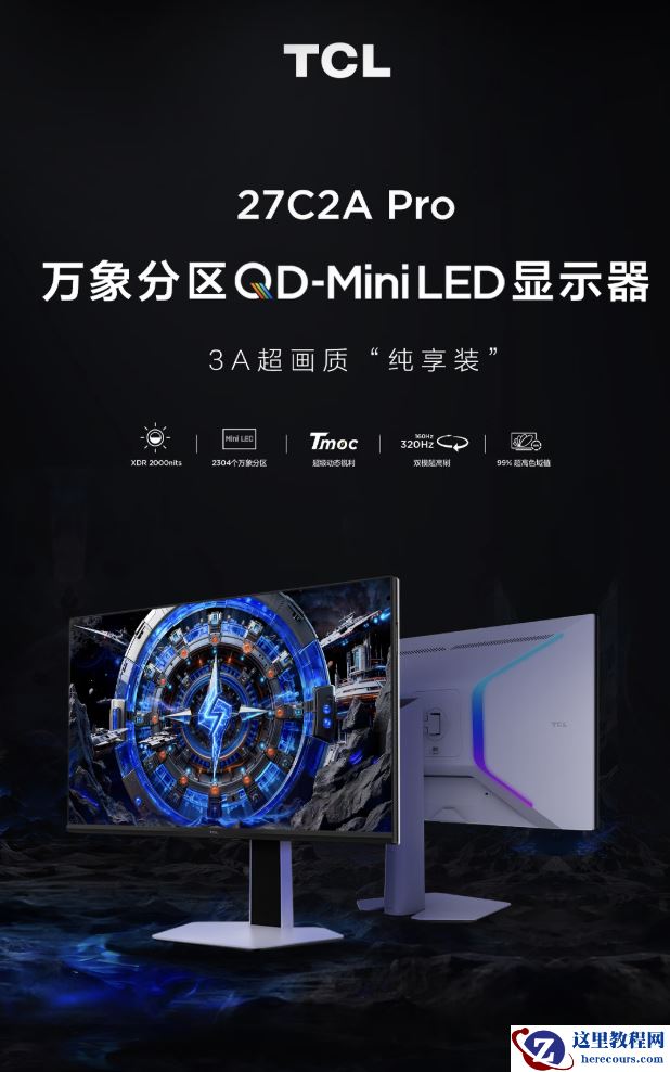 3 月 13 日消息,TCL 现已在京东上架型号为“27C2A Pro”的 27 英寸显示器,该机主打 4K 160Hz / FHD 320Hz 双模,定价为 3367 元,部分地区国补后到手价低至 3182.66 元。