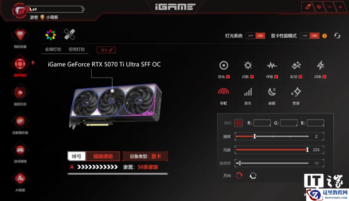 除了显卡硬件本身,七彩虹也为玩家朋友们准备了专属的硬件控制软件 ——iGame 自在星球。