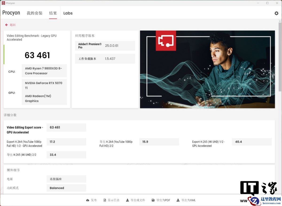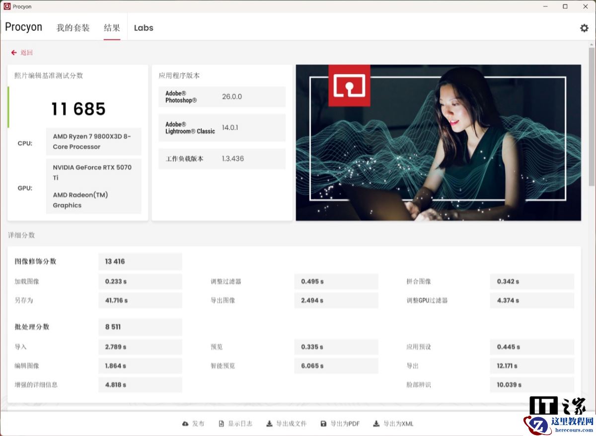 在 UL Procyon 的照片编辑性能测试项目中: